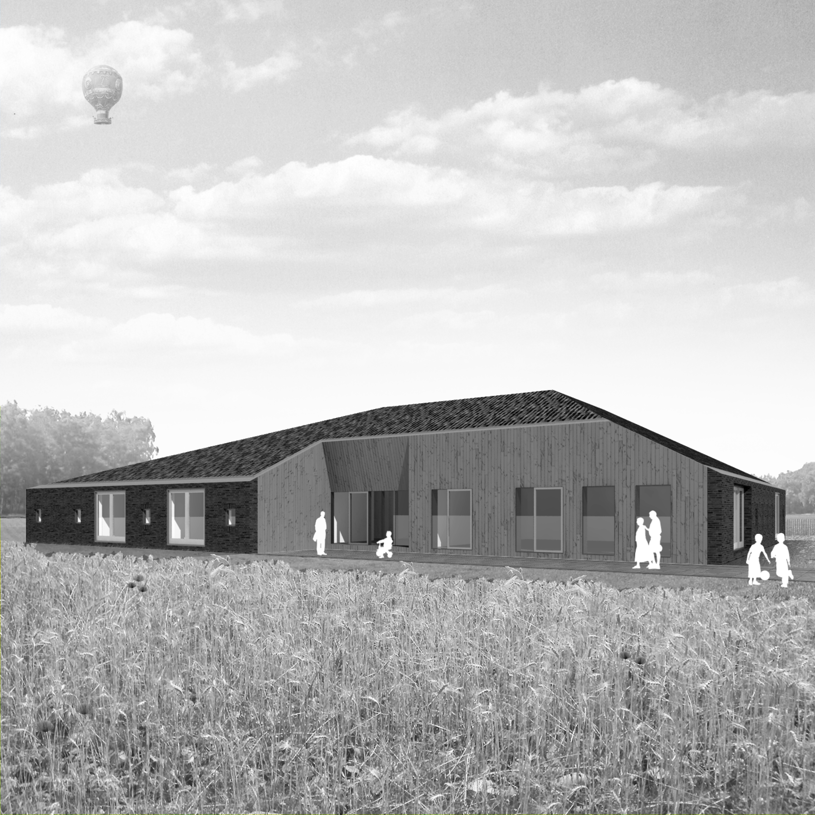 Transformatie van een voormalige boerderij naar een gezinshuis met dagbesteding voor jong volwassenen.