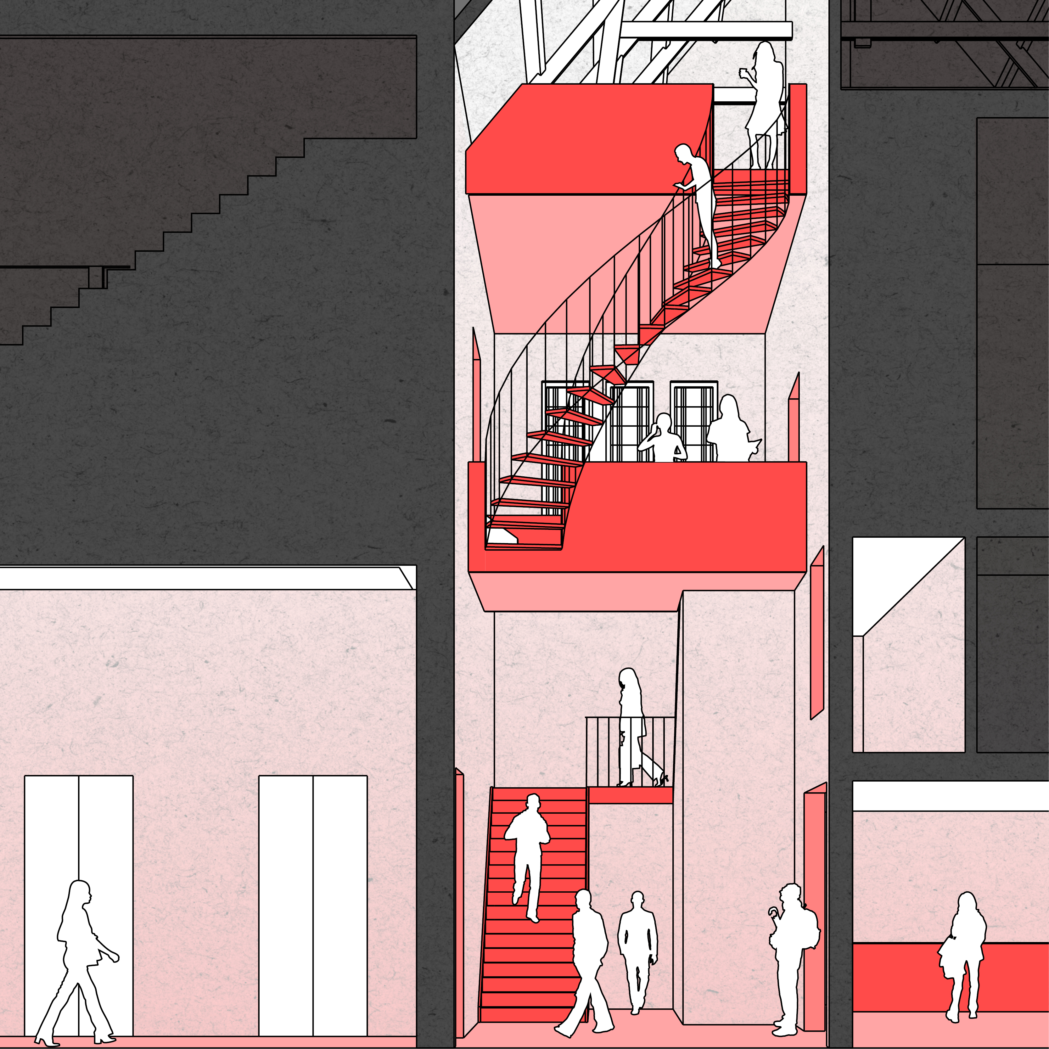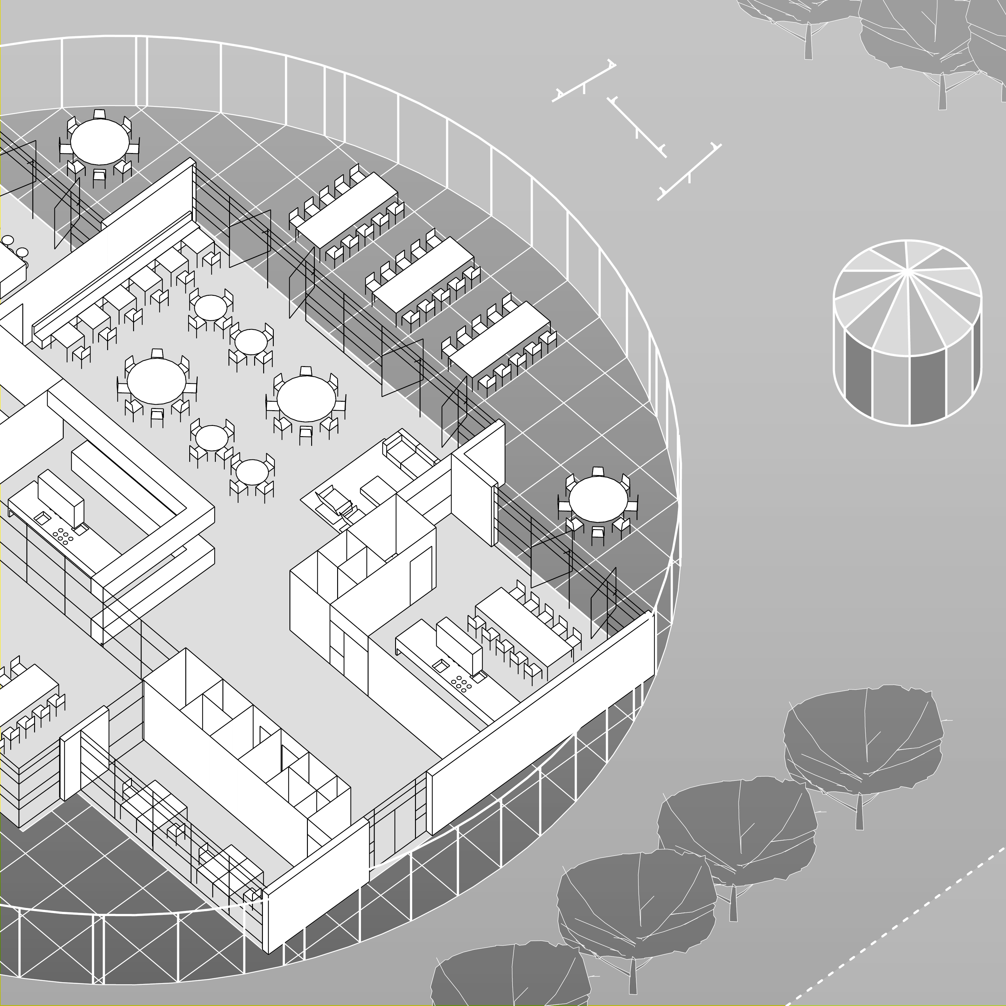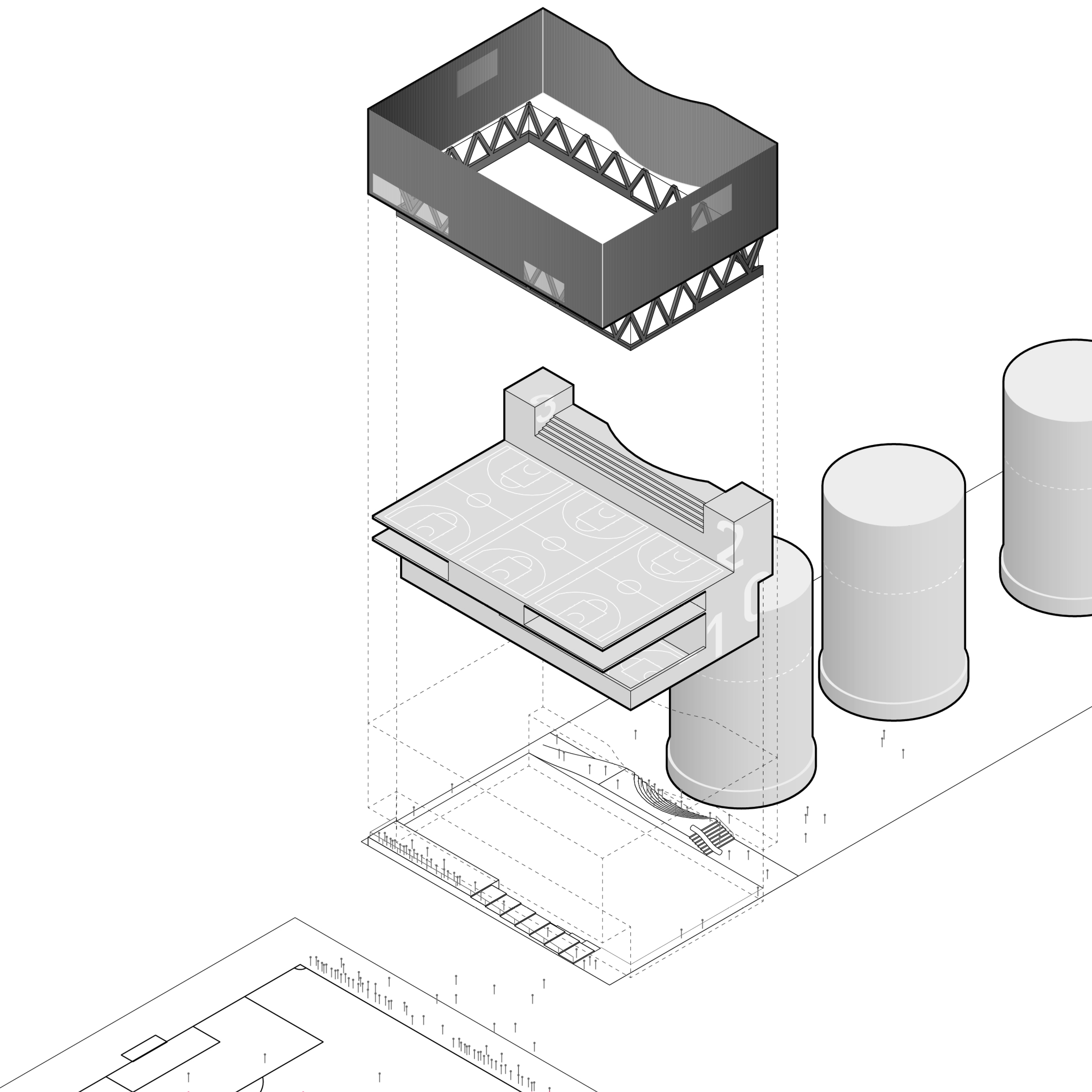 De visie op het nieuwe sportgebouw op Zeeburgeleiland (naast de beeldbepalende silo's Zeeburgereiland) kent een gestapeld programma: in het souterain wordt één sportzaal gepositioneerd met de horeca en een stadsterras op de bel-etage. De eerste verdieping wordt gevormd door een servicelaag met kantoren en kleedruimten voor de sportzaal op de boveste (dubbelhoge) laag.