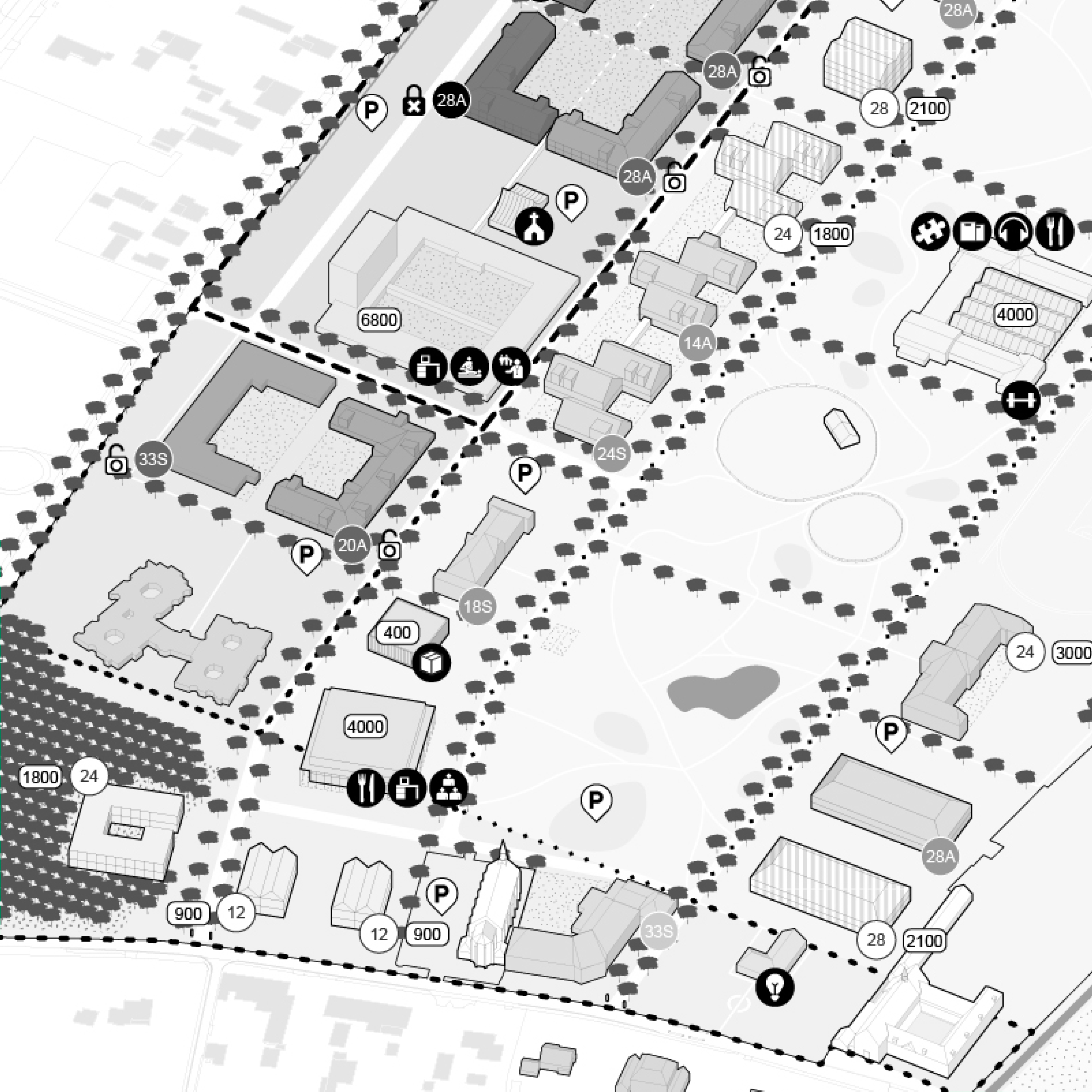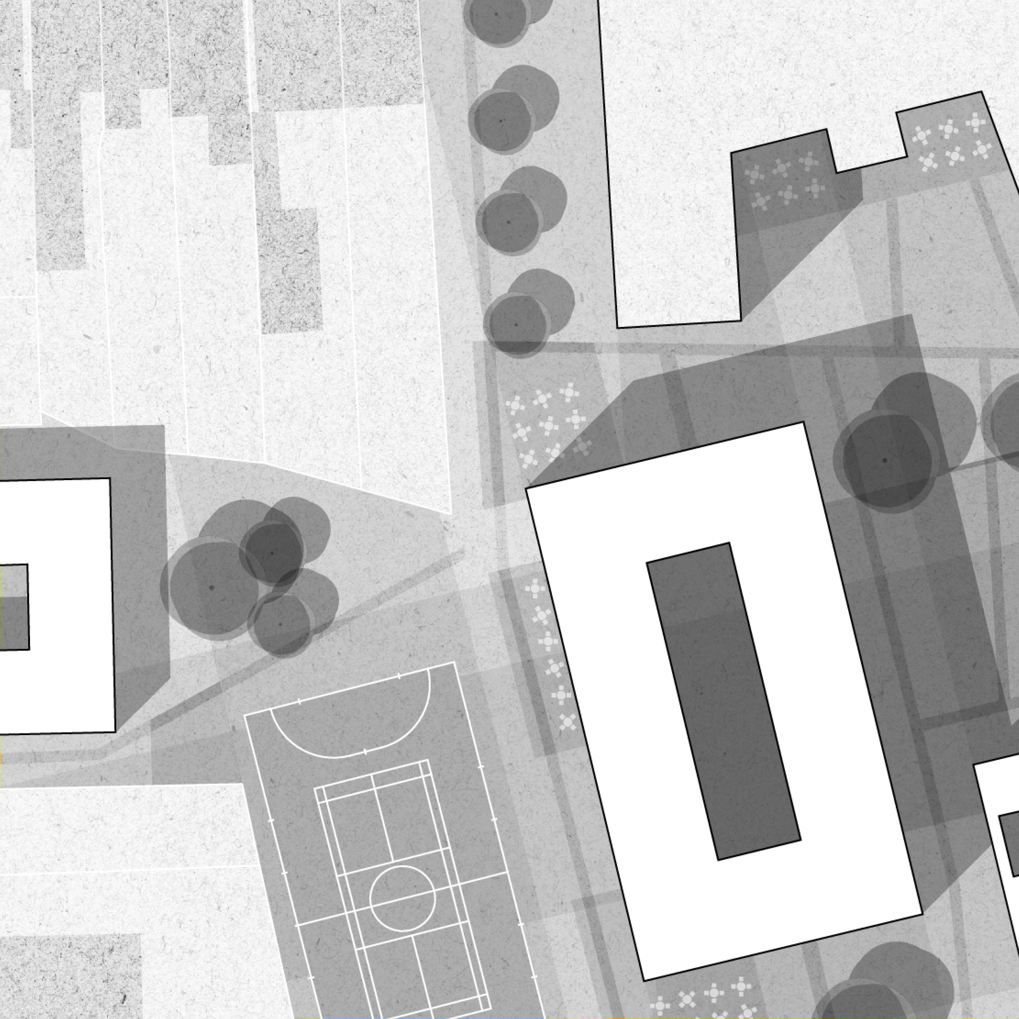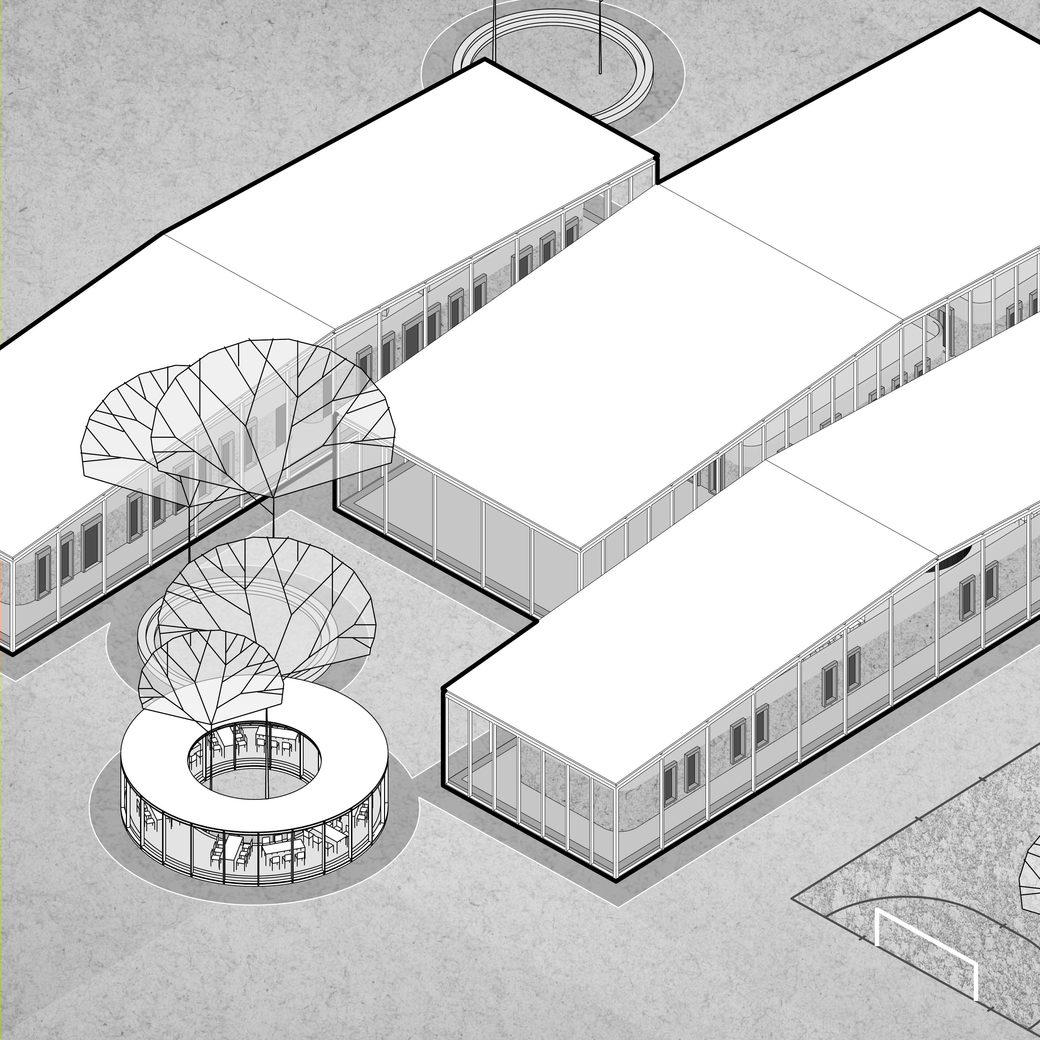 schoolgebouwen en een voormalig gymzaaltje op